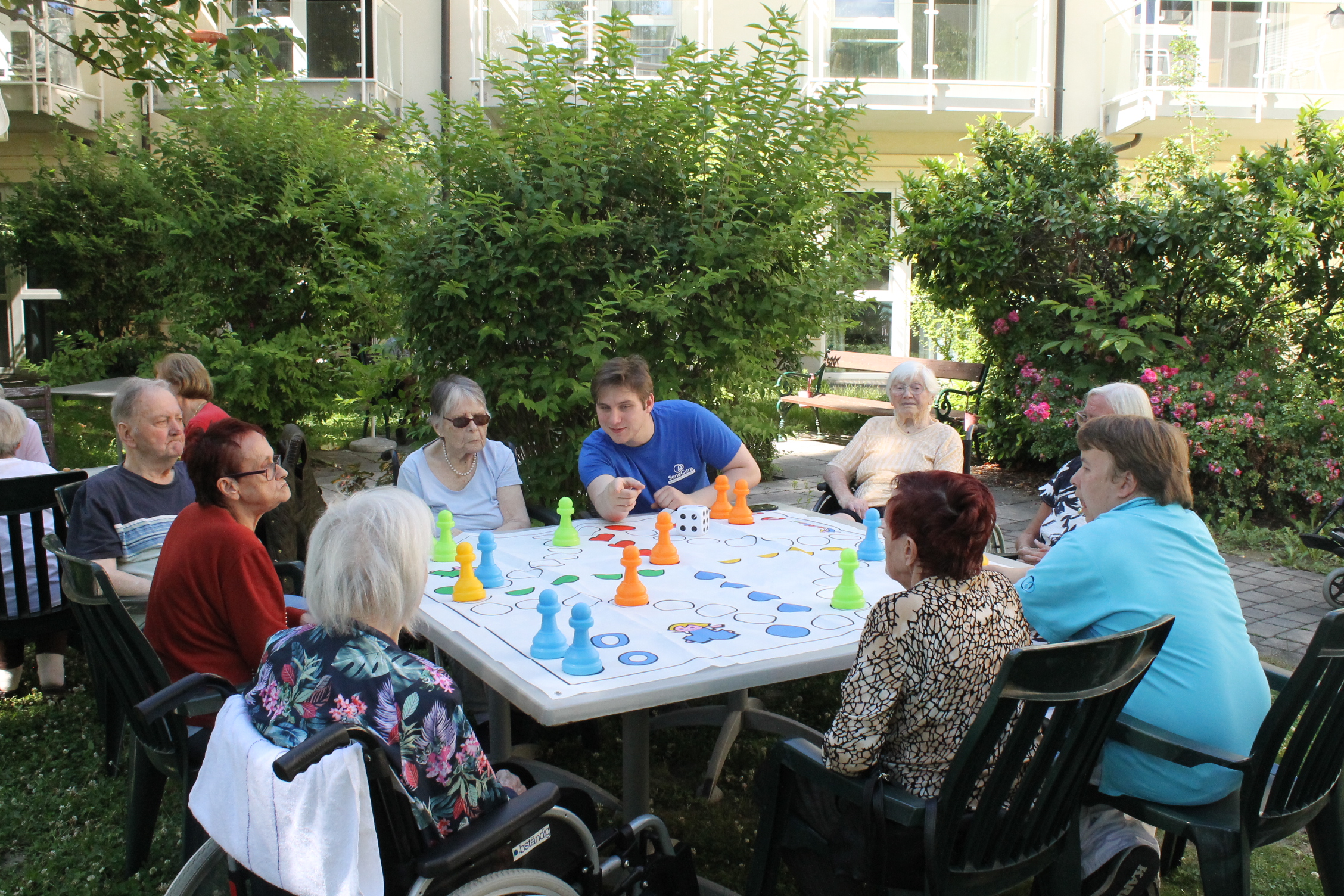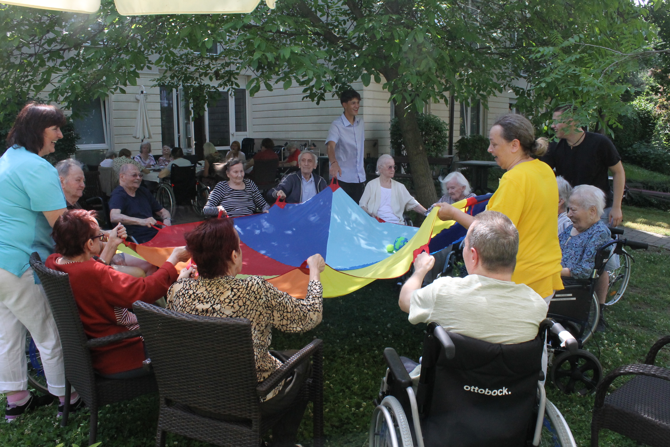In der SeneCura Residenz Grinzing gibt es derzeit ein buntes Programm voll sommerlicher Aktivitäten. So wurde kürzlich im Garten gemeinsam die Heilige Messe gefeiert, die ehrenamtliche Mitarbeiterin Renate Stingl organisierte eine Singrunde unter den schattigen Bäumen, Zivildiener Leon spielte mit den Bewohner:innen „Mensch ärgere dich nicht“, es wurde eine köstliche Waffeljause veranstaltet und die Sozialpraktikant:innen sorgten mit dem Schwungtuch für Action. Ein Sommer, ganz nach dem Geschmack der Bewohner:innen.