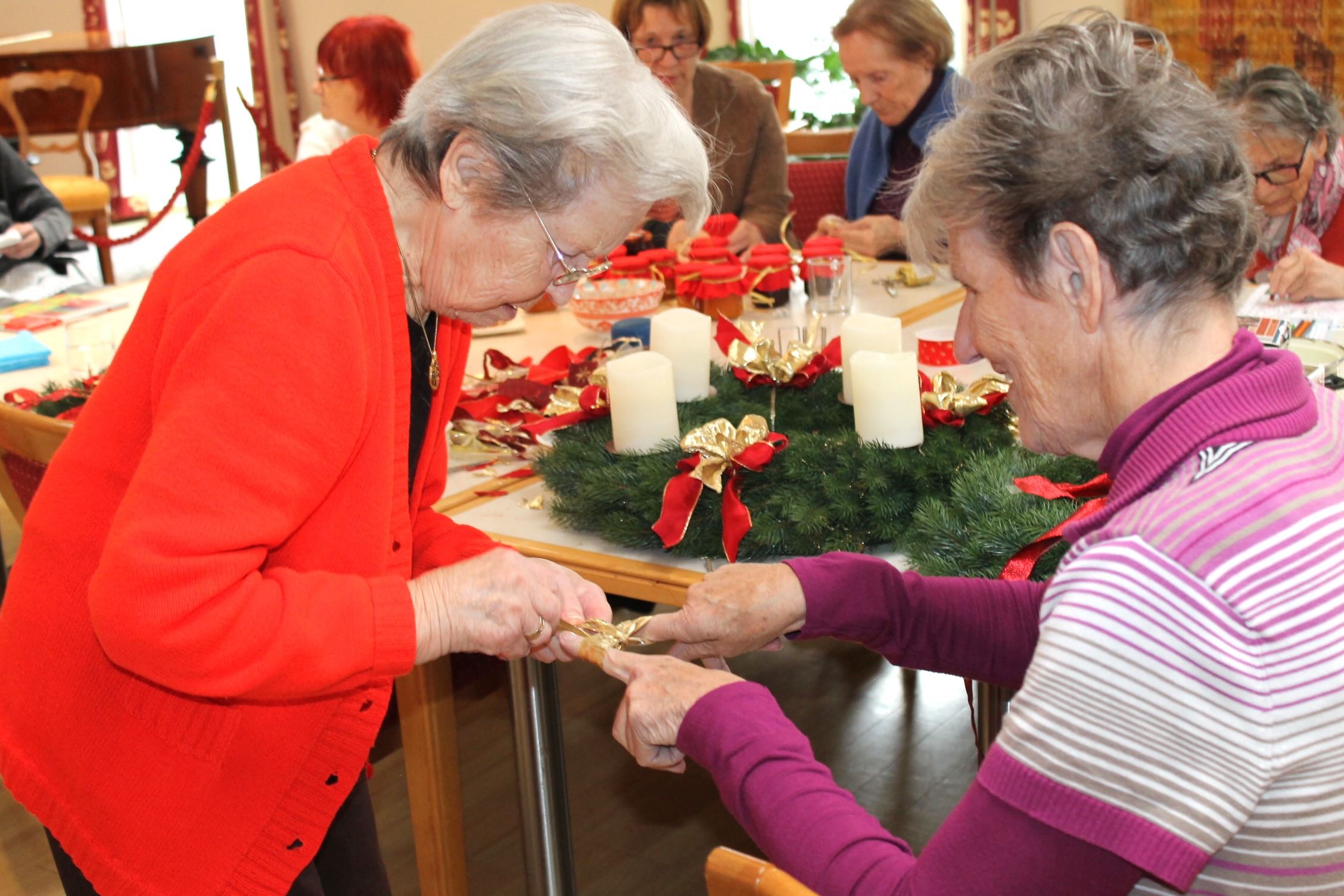 Mit duftendem Tannengrün, würzigem Zimt und der Wärme von Kerzenlicht wurde die Vorweihnachtszeit in der SeneCura Residenz Grinzing eingeläutet. Beim Adventkranzbinden kamen die Bewohner:innen zusammen, um gemeinsam kreativ zu sein. In geselliger Runde entstanden mit viel Fleiß und Freude einzigartige Kränze, die mit glänzenden Kugeln, roten Schleifen und Kerzen geschmückt wurden. Der Duft von frischen Zweigen erfüllte den Raum und sorgte für eine stimmungsvolle, besinnliche Atmosphäre. „Es war etwas ganz Besonderes zusammenzukommen, um gemeinsam zu basteln und sich auf Weihnachten einzustimmen“, schwärmt Sigrun Lukas, eine Bewohnerin der SeneCura Residenz Grinzing. „Wir haben viel gelacht und uns gegenseitig geholfen – das macht die Adventzeit so besonders.“