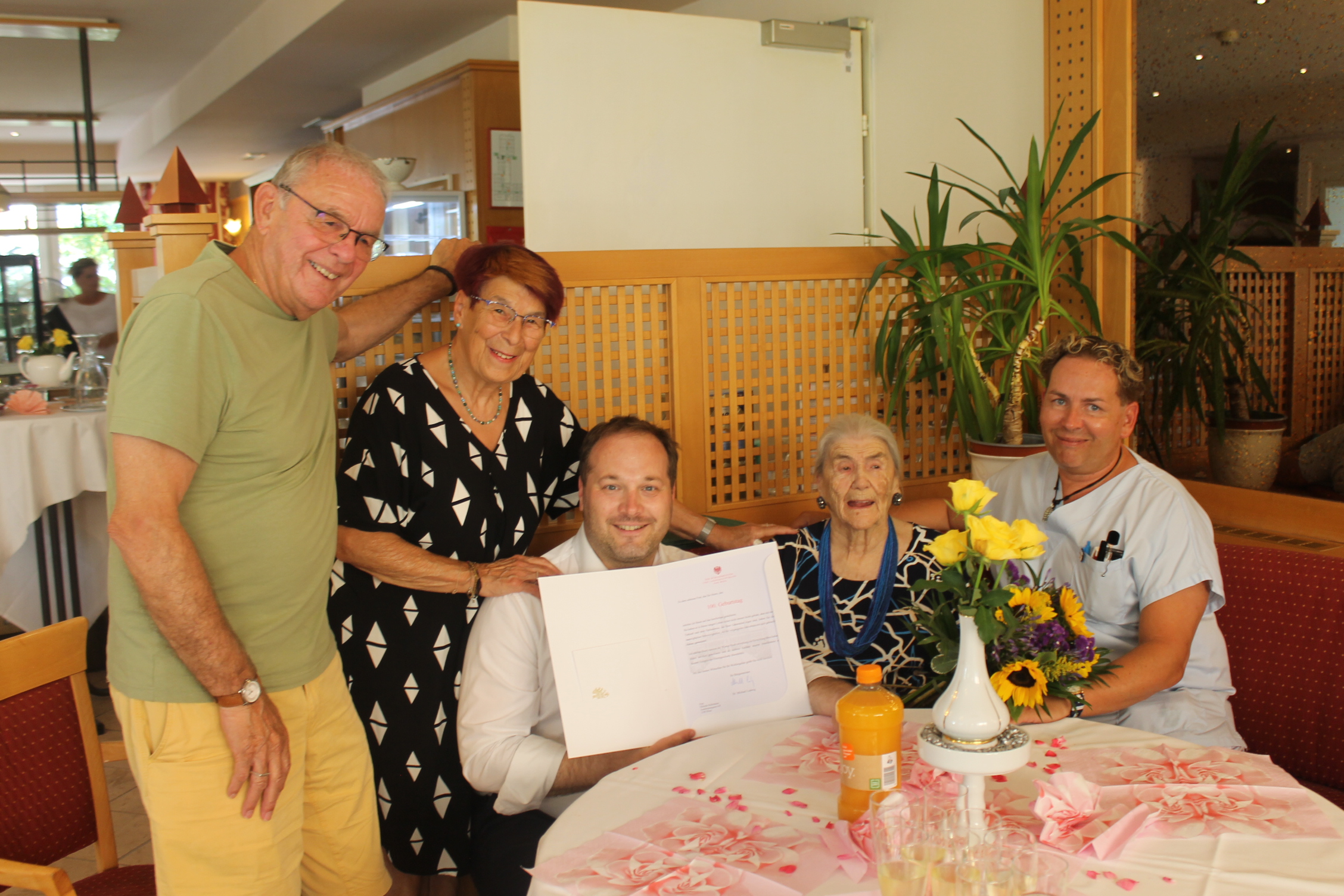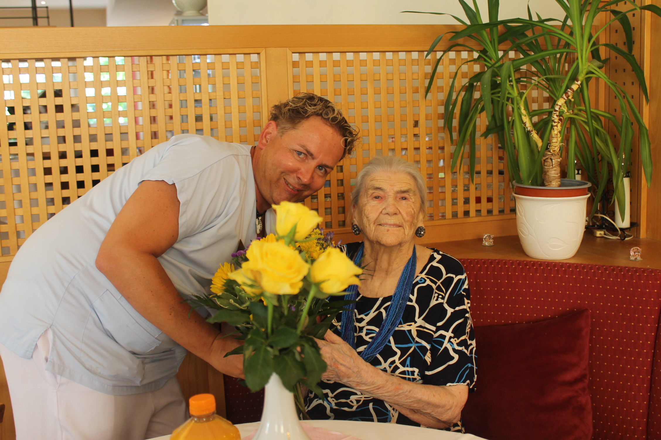 In der SeneCura Residenz Grinzing fand kürzlich eine besondere Geburtstagsfeier statt. Die Bewohnerin Frau Holledauer feierte nämlich ihren stolzen 100. Geburtstag im Haus. Auch der BV Daniel Resch freute sich, die Glückwünsche an die Jubilarin persönlich überbringen zu dürfen und es wurde mit einem Gläschen Sekt auf Frau Holledauer angestoßen.